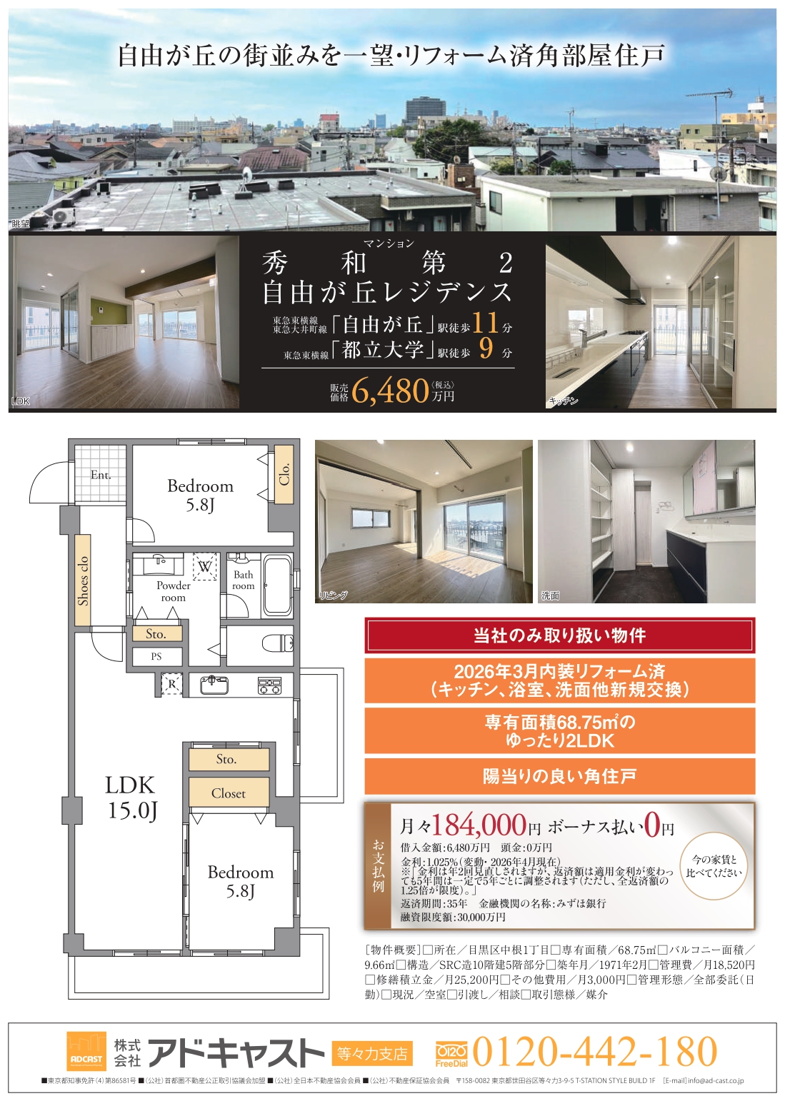 今回はアドキャスト等々力店がおすすめする魅力的な物件をご紹介します。