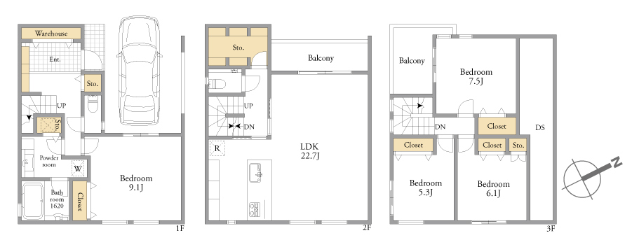 | 土地面積 | 85.91m²(実測) | 建物面積 | 138.17m²(実測) (うち1F車庫面積:15.09m²) |