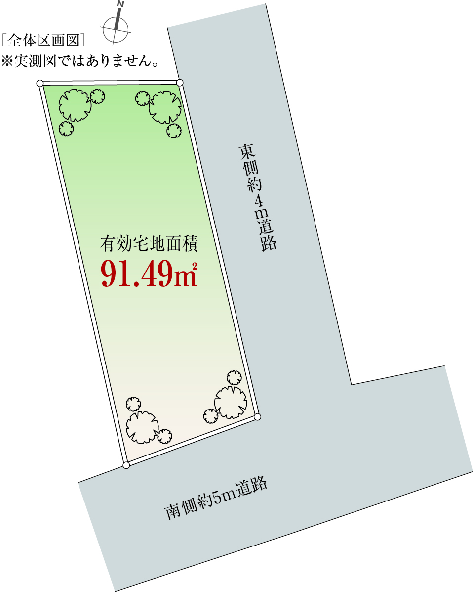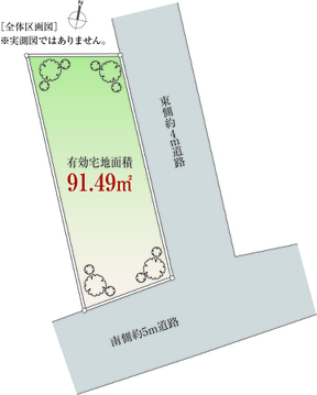 | 建ぺい率/容積率 | 60%/200% | 接道 | 角地 東側幅4.2m 南側幅5m |