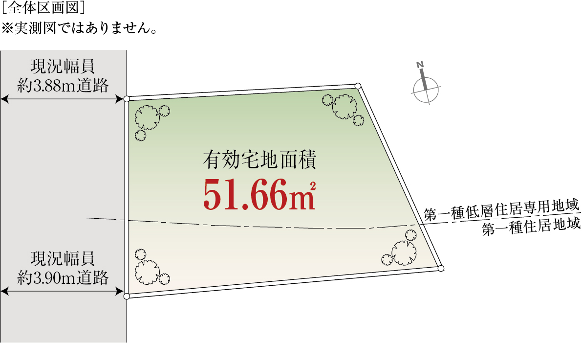 | 土地面積 | 51m²(実測) | 建ぺい率/容積率 | 60%/150%(160%) |