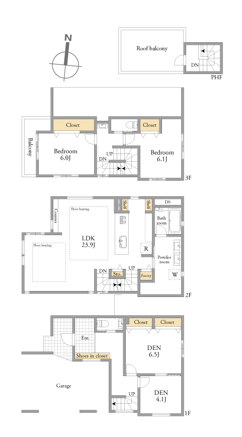 | 土地面積 | 80.41m²(実測) | 建物面積 | 147.12m²(実測) (うち1F車庫面積:18.83m²) |