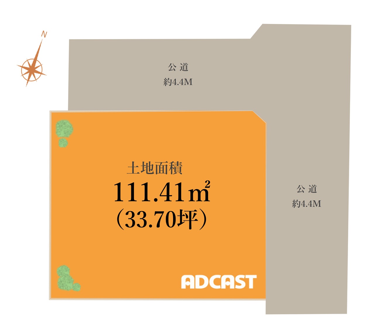| 接道 | 一方 北側幅4.4m 東側幅4.4m |
