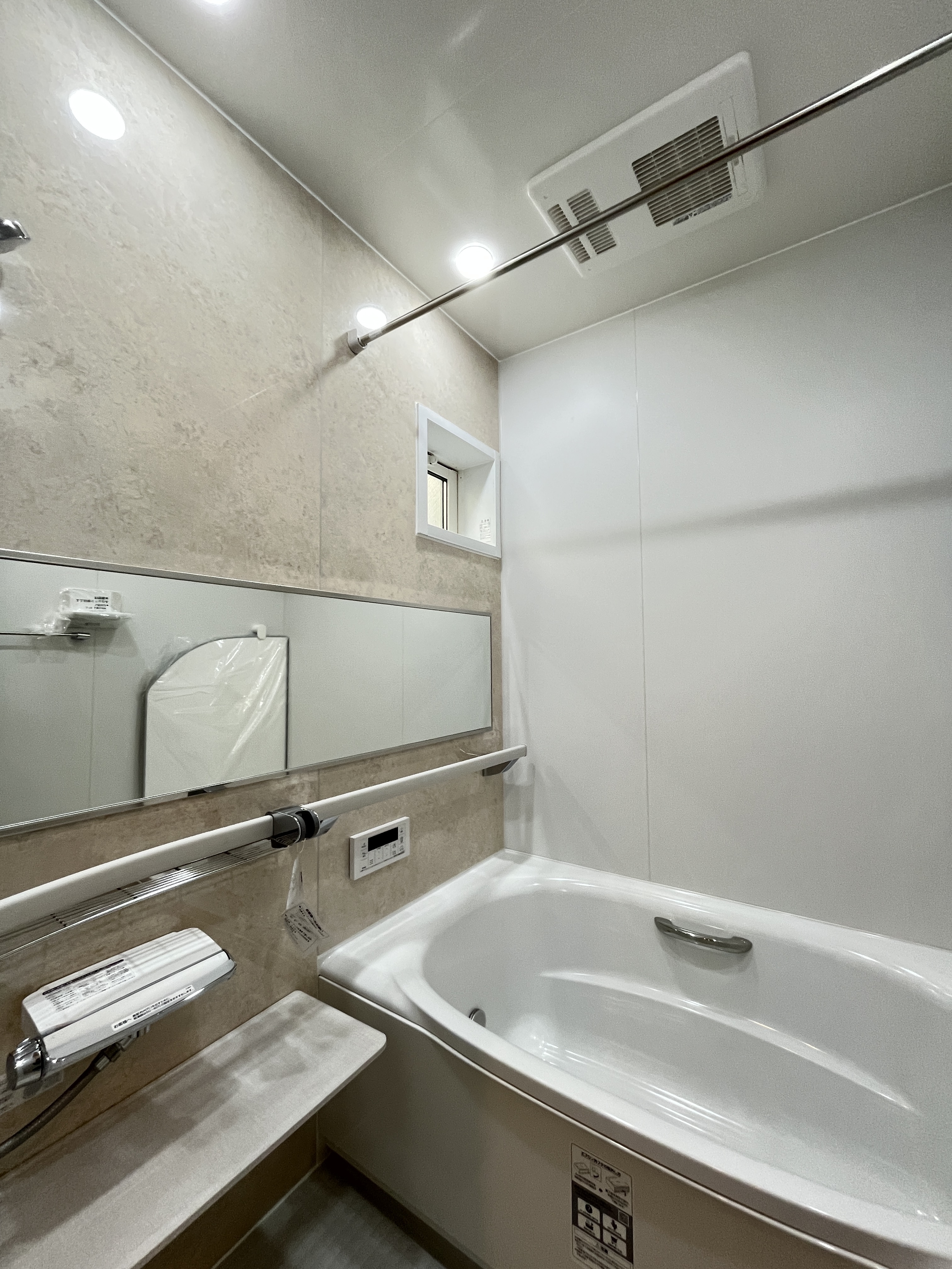 モダンなパネルが落ち着きを演出するバスルーム。ゆったりとした浴槽で、日々の疲れをリフレッシュ。 -