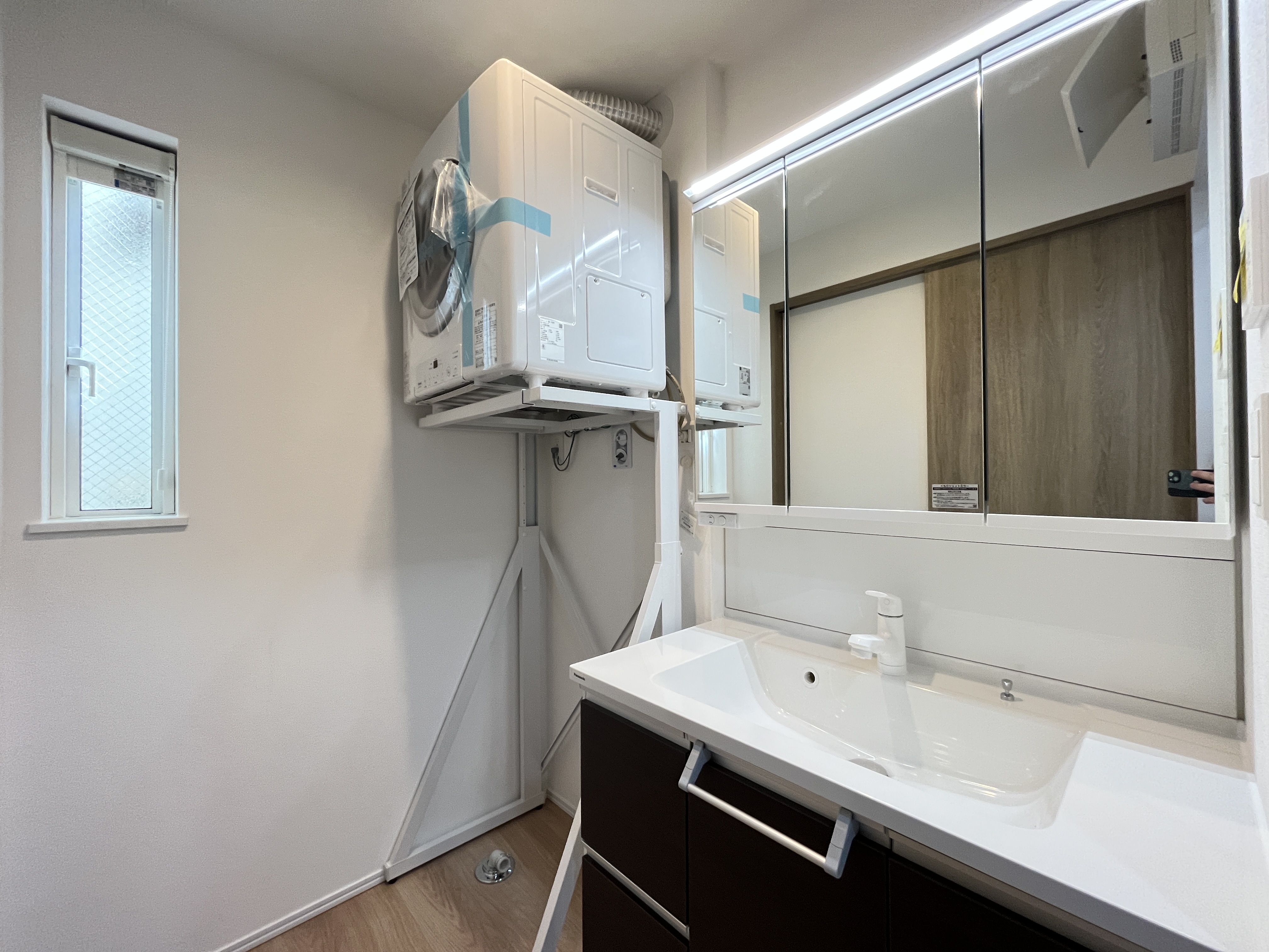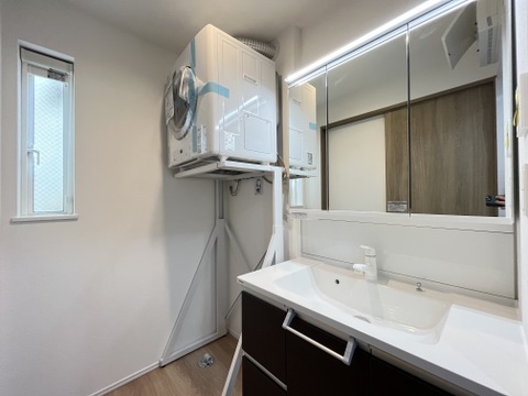 清潔感のあるスタイリッシュな洗面化粧台。朝の身支度がスムーズに整います。 -