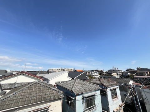 住戸からの青空と街並みを見渡す開放的な眺望。日当たり良好で、心地よい風が吹き抜ける住環境です。 -