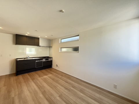 奥行きがあり家具配置もしやすい居室空間。高所に配した窓が、プライバシーを守りつつ光を採り入れます。 -