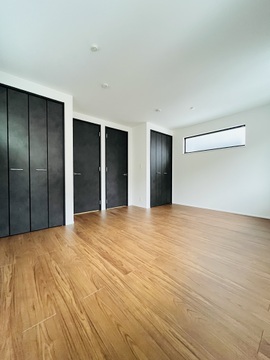 木目調の床材とダークカラーの建具が落ち着いた雰囲気を演出する洋室。寝室や書斎などにおすすめです。 -