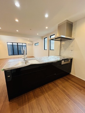 スタイリッシュな対面式のオープンキッチン。ご家族との会話を楽しみながらお料理ができる人気の仕様です。 -