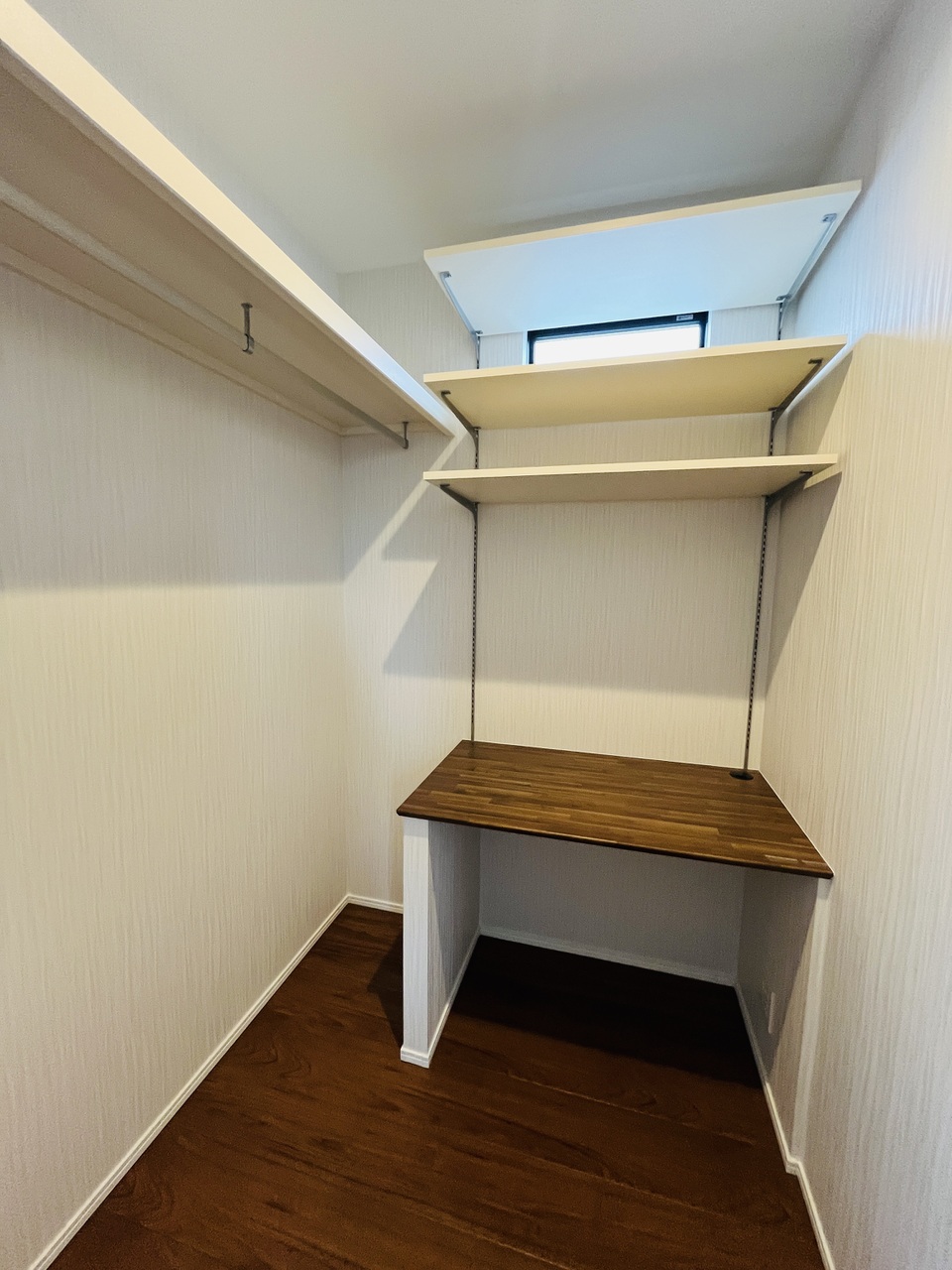 カウンターを備えた機能的な大容量収納スペース。収納としてだけでなく、書斎や家事室としても活躍します。 -