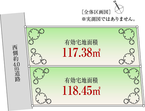 | 土地面積 | 117.38m²(実測) | 建ぺい率/容積率 | 50%/100% |