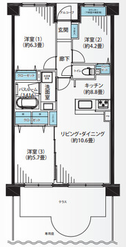 | 間取り | 3LDKテラス・専用庭 | ||