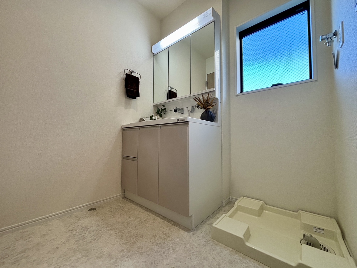 ・白を基調とした清潔感のある洗面台で、毎朝の支度が気持ちよく始められます。 -